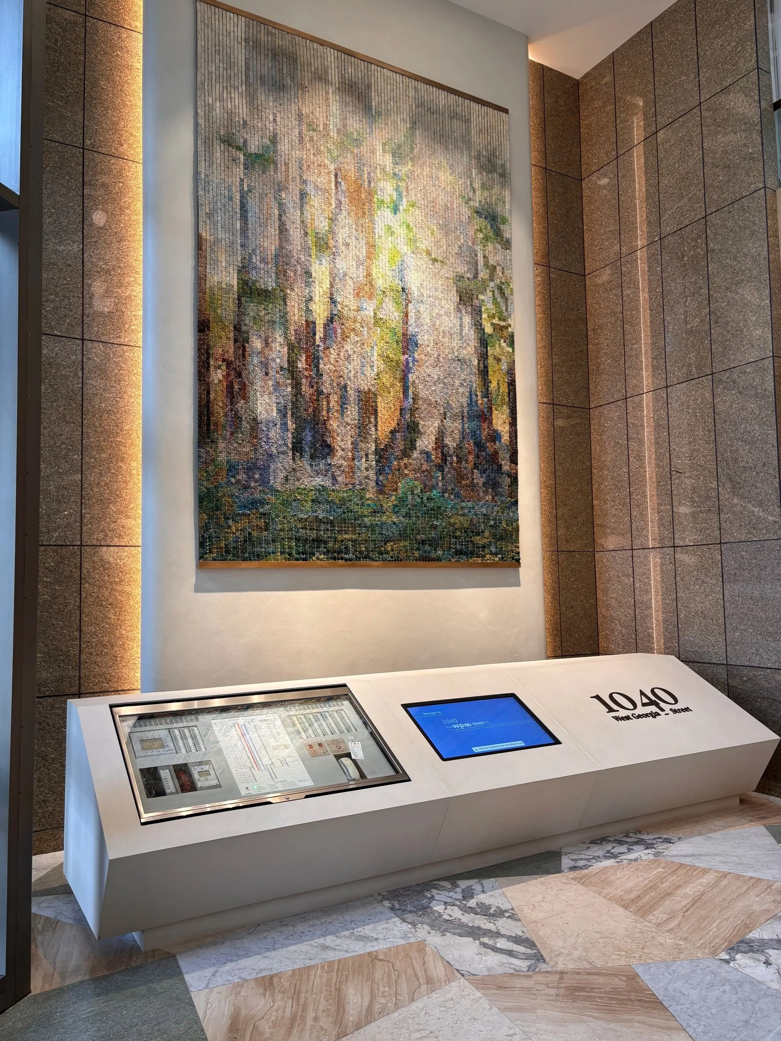 This office lobby refresh offered an exciting challenge for our team. In addtion to a 25’ wall, we were asked to apply Microtopping® to an existing marble stone directory and were able to provide an incredible result with compromise.